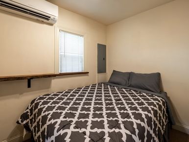 Bedroom 2 offers an exterior door exit. This leads to the backyard.