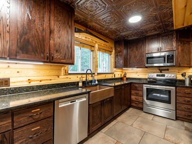 Stone Fireplace. Guests are provided with five logs for their enjoyment. Additional logs are available for purchase or you may always bring your own.