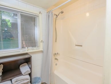 Enjoy the fireplace and 60" TV. Login and connect your own apps as well as use what is there and local antenna.